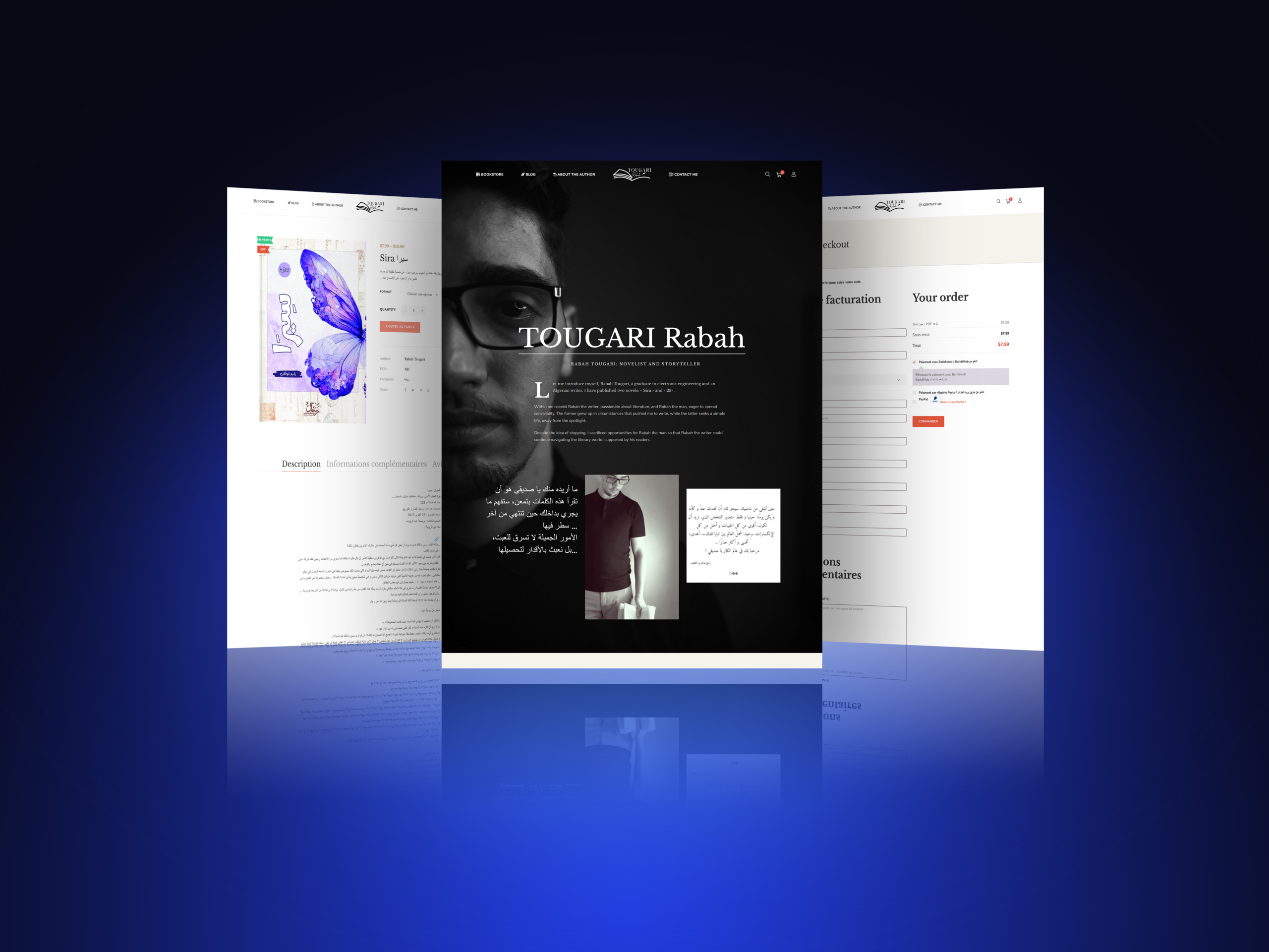 Création d’une plateforme e-commerce élégante et fonctionnelle dédiée à la vente des œuvres littéraires de Rabah Tougari. Ce site permet aux lecteurs d’acheter facilement ses livres en format numérique (PDF) ou papier, tout en découvrant l’univers artistique et narratif de l’auteur à travers une expérience utilisateur immersive et raffinée.